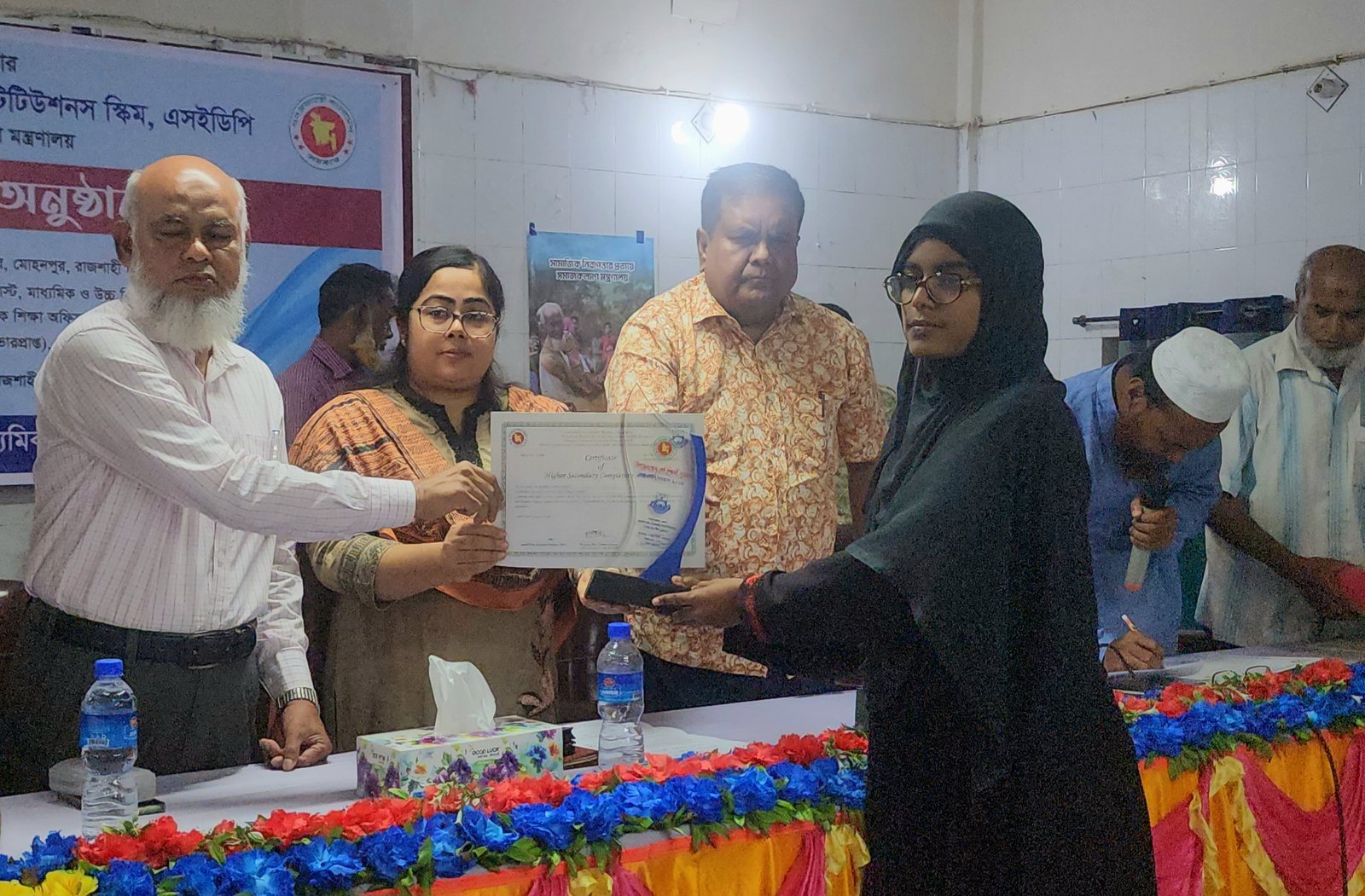 নিজস্ব প্রতিনিধি: মাধ্যমিক ও উচ্চ শিক্ষা অধিদপ্তর ও শিক্ষা মন্ত্রণালয়ের উদ্যোগে “এসইডিপি” স্কিমের আওতায় রাজশাহীর মোহনপুরে ৪০ জন মেধাবী শিক্ষার্থীকে সম্মাননা দেওয়া হয়েছে।