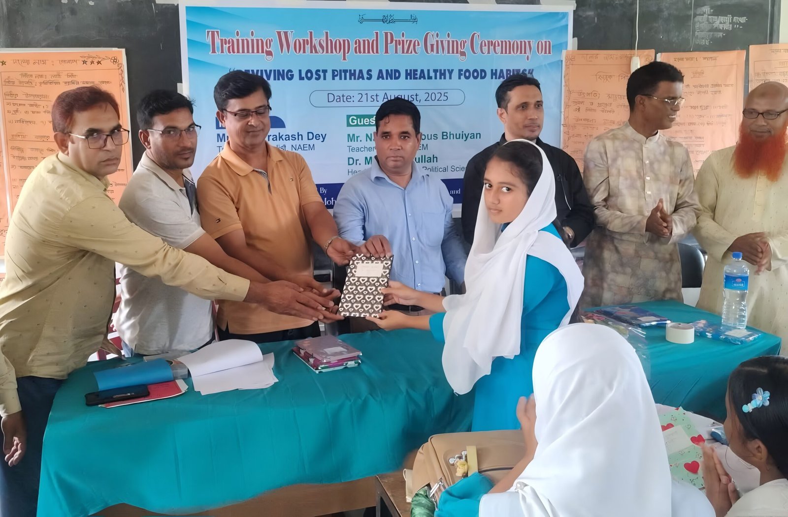On Thursday, August 21, Mahabbatpur High School, with the overall cooperation of GCC Bangladesh, organized a day-long training workshop and prize-giving ceremony under the project titled “Community Engagement and Student Empowerment in Reviving Traditional Pitha Culture.”