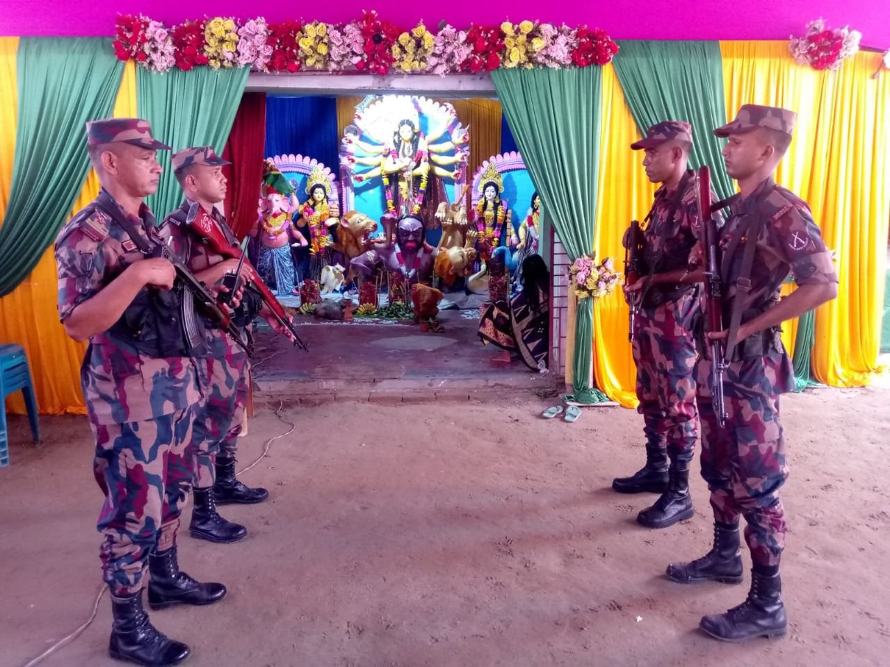 According to a press release issued by the Commanding Officer of 1 BGB, a total of 13 platoons have been deployed since September 23, 2025. The troops are covering temples and puja mandaps located within 8 kilometers of the border area under their responsibility, as well as within 2 kilometers of the battalion headquarters. Regular patrols are being carried out to prevent any untoward incidents or deterioration of law and order.